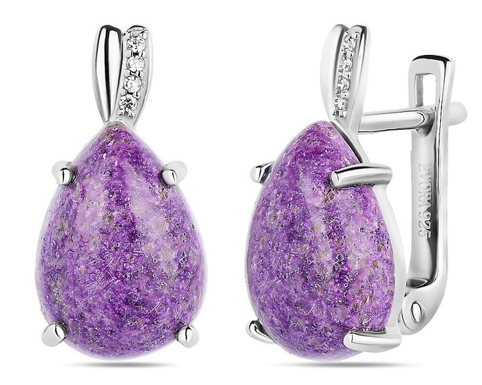 Серьги из серебра с аметистом и кубическим цирконием родированные 925 пробы GTE-