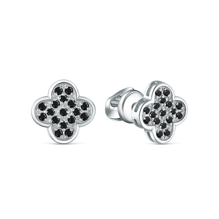 Совместные покупки Нижний Тагил Ювелирные украшения и бижутерия Серьги — Серьги-пусеты из серебра с чёрными фианитами родированные 925 пробы С-4005-Р-16