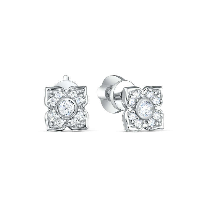 Совместные покупки Нижний Тагил Ювелирные украшения и бижутерия Серьги — Серьги-пусеты из серебра с фианитами родированные 925 пробы 12-1191р