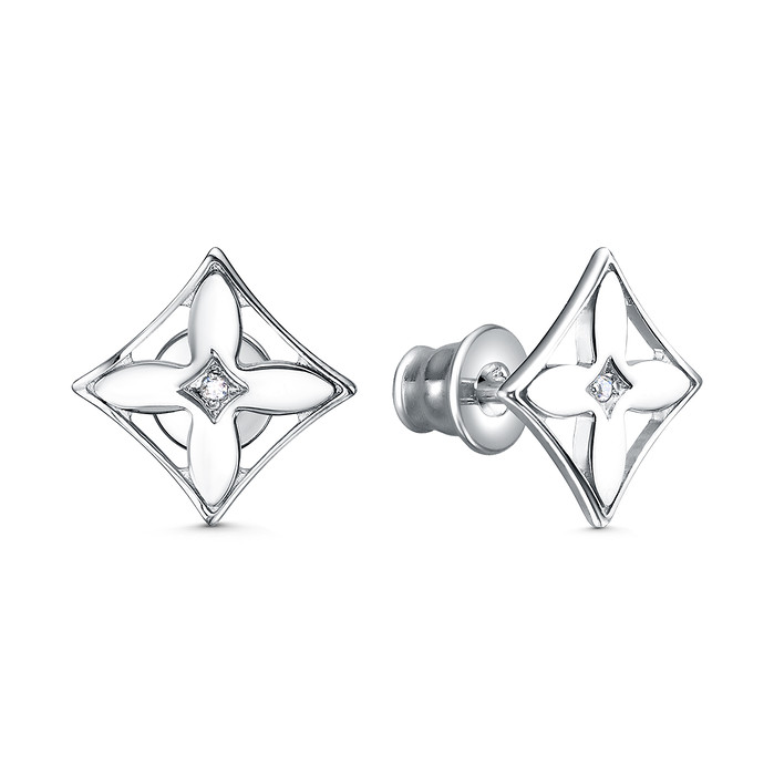 Совместные покупки Нижний Тагил Ювелирные украшения и бижутерия Серьги — Серьги-пусеты из серебра с фианитами родированные - Клевер 925 пробы 221-10-052р