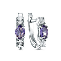 Серьги-пусеты из серебра с кристаллами премиум Австрия мистик розовый родированн
