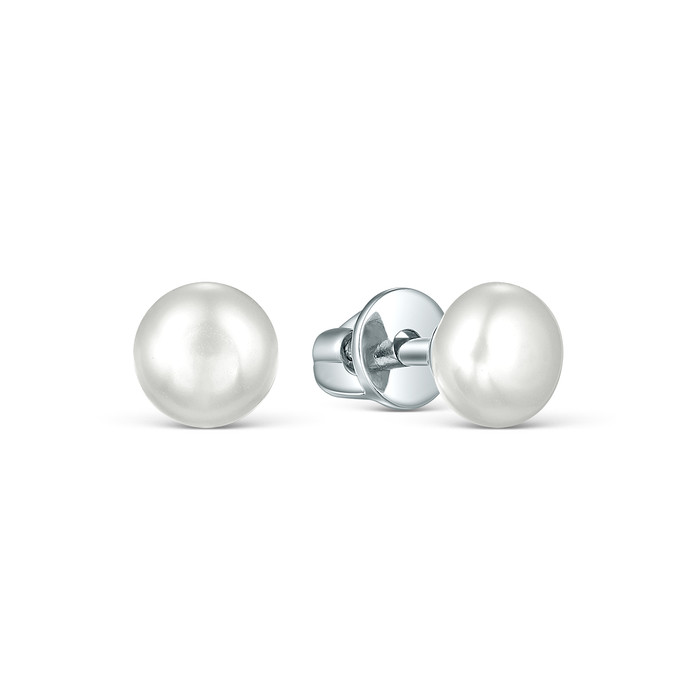 — Серьги-пусеты из серебра с культивированным жемчугом родированные 04-702-0047
