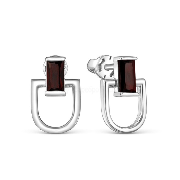 Серьги-пусеты из серебра с нат.гранатом родированные 925 пробы 2-342р404