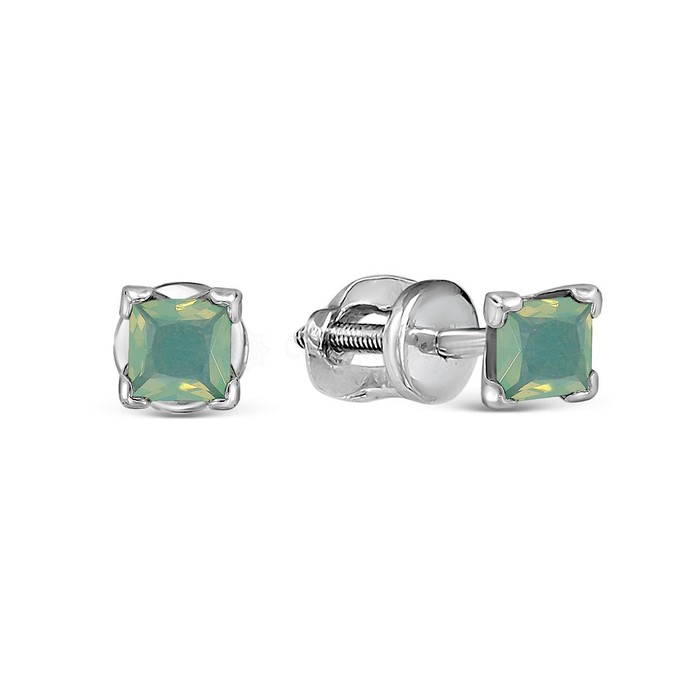 Совместные покупки Нижний Тагил Ювелирные украшения и бижутерия Серьги — Серьги-пусеты из серебра с пл.кварцем цв.лунный зелёный родированные 925 пробы 2