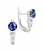Серьги-пусеты из серебра с синт. муассанитами и фианитами родированные