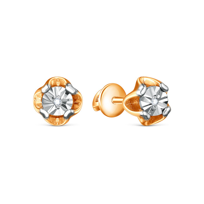 Совместные покупки Нижний Тагил Ювелирные украшения и бижутерия Серьги — Серьги-пусеты из золочёного серебра с бриллиантами и родированием 925 пробы 4-58