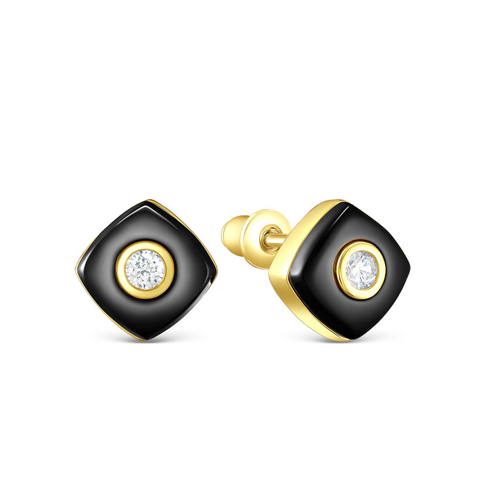 Совместные покупки Нижний Тагил Ювелирные украшения и бижутерия Серьги — Серьги-пусеты из золочёного серебра с керамикой и фианитами 925 пробы TC-E01144-