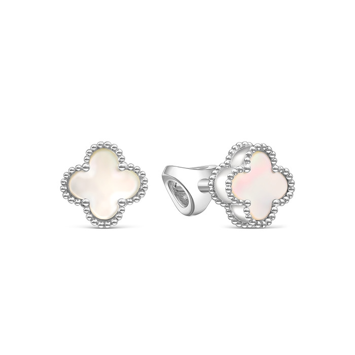 Совместные покупки Нижний Тагил Ювелирные украшения и бижутерия Серьги — Серьги-пусеты Клевер Четырехлистник из серебра с белым перламутром родированные