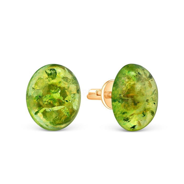 Совместные покупки Нижний Тагил Ювелирные украшения и бижутерия Серьги — Серьги-пусеты Овалы из золочёного серебра с натуральным зелёным янтарём 925 проб