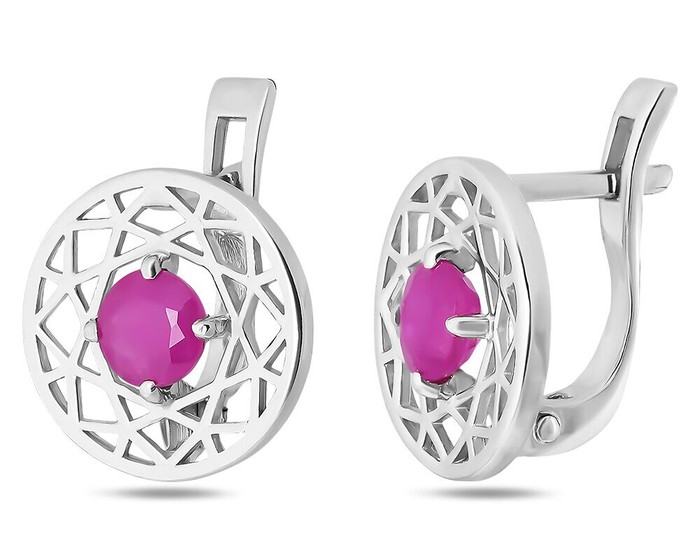 Серьги, арт.656920 Серебро Серебро 925, 3,02 гр., рубин корунд