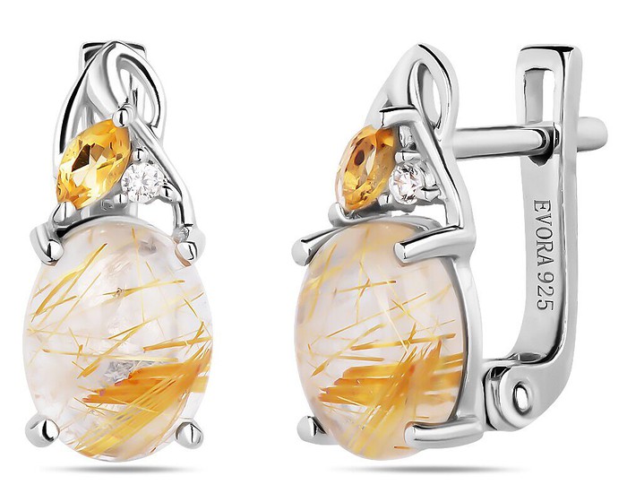 Серьги, арт.658677 Серебро Серебро 925, 3,44 гр., рутиловый кварц золотой , цитрин