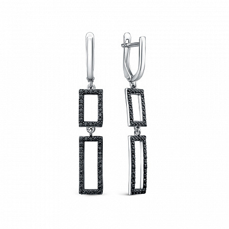 Серьги с фианитом родированные серебро 925*