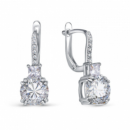 Серьги с фианитом родированные серебро 925*