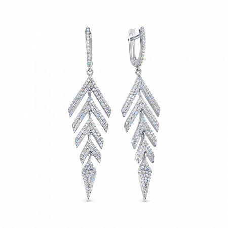 Серьги с фианитом родированные серебро 925*