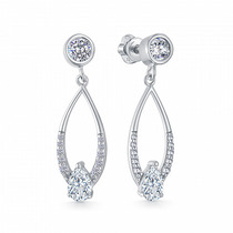 Серьги с фианитом родированные серебро 925*