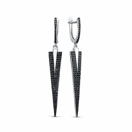 Серьги с фианитом родированные серебро 925*