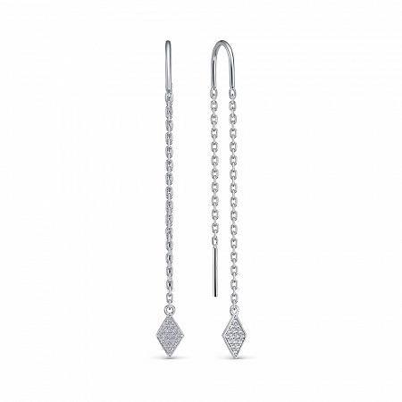 Серьги с фианитом родированные серебро 925*