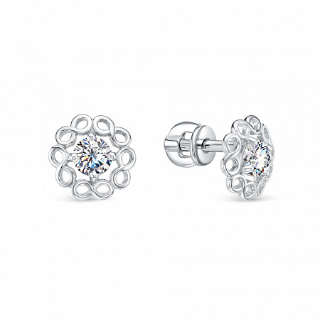 Серьги с фианитом родированные серебро 925*