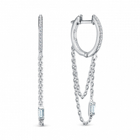 Серьги с фианитом родированные серебро 925*