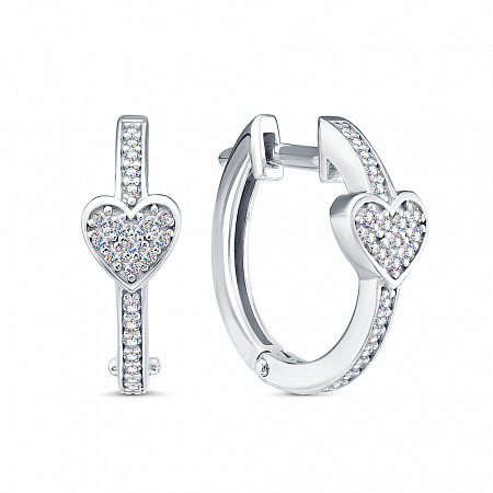 Серьги с фианитом родированные серебро 925*