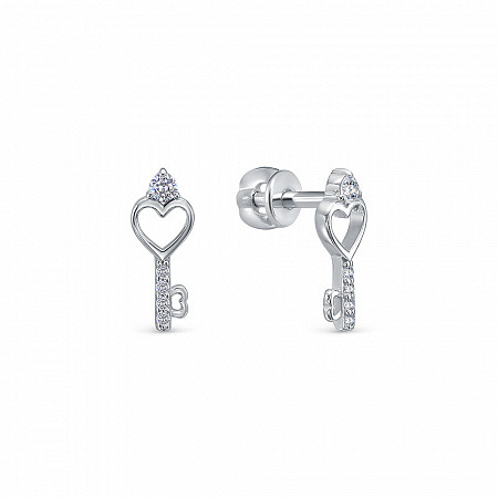 Серьги с фианитом родированные серебро 925*