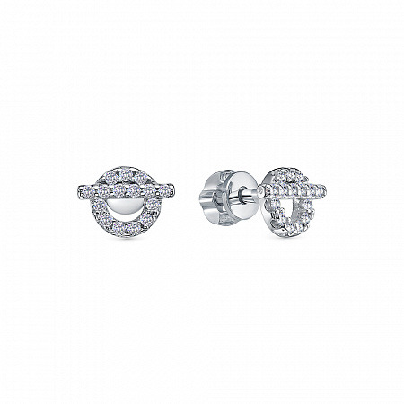 Серьги с фианитом родированные серебро 925*