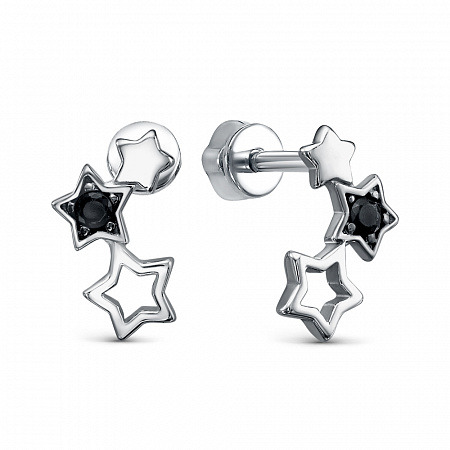 Серьги с фианитом родированные серебро 925*