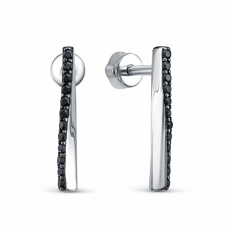 Серьги с фианитом родированные серебро 925*