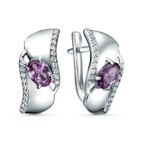 Серьги из серебра с александритом и фианитами родированные 2-3977-001