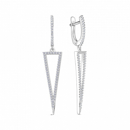 Серьги с фианитом родированные серебро 925*
