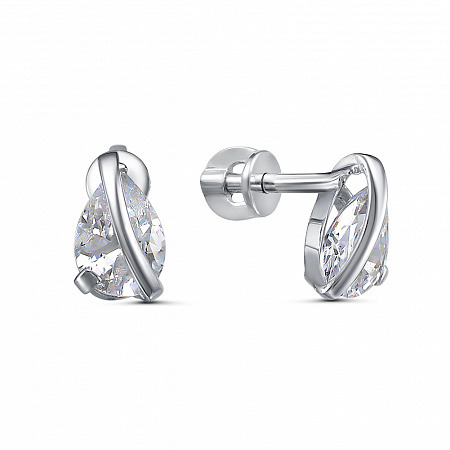 Серьги с фианитом родированные серебро 925*