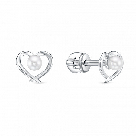 Серьги с иск.жемчугом родированные серебро 925*