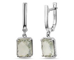 Серьги из серебра зеленый аметист, Куб