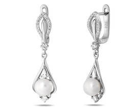 Серьги-пусеты из серебра с зелёным янтарём родированные 04-802-0066-09