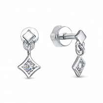 Серьги с фианитом родированные серебро 925*
