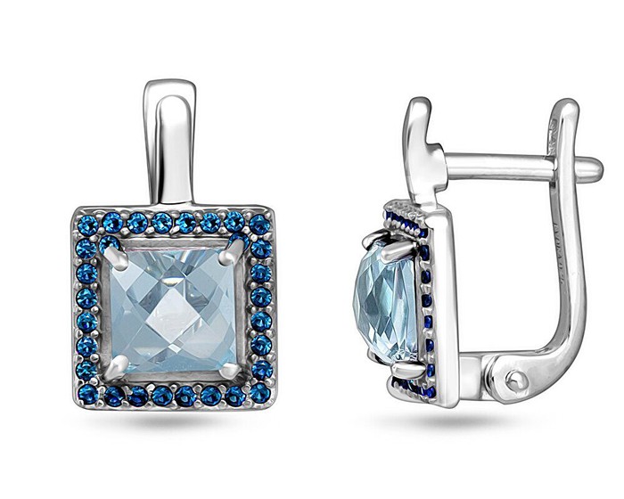 Серьги, арт.654710 Серебро Серебро 925, 4,49 гр., топаз , наносапфир