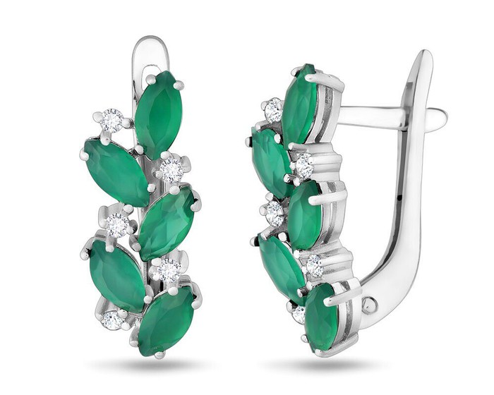 Серьги, арт.656556 Серебро Серебро 925, 2,96 гр., зеленый агат