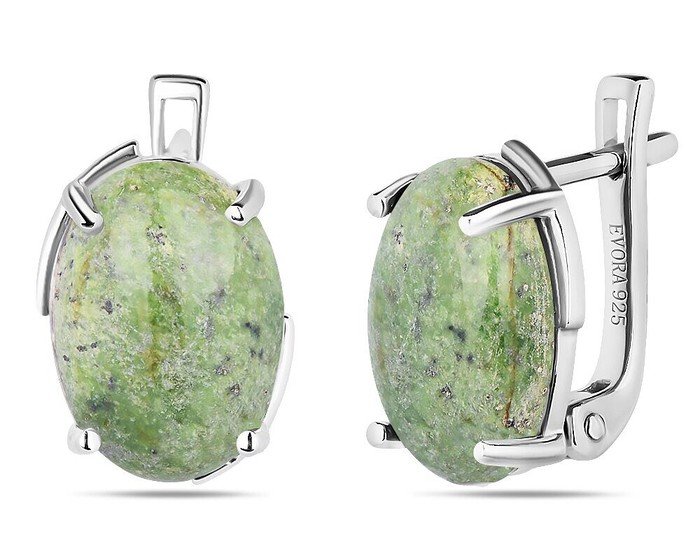Серьги, арт.658757 Серебро Серебро 925, 4,88 гр., зеленый опал