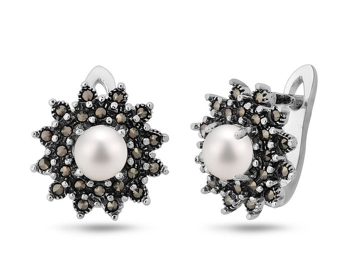 Серьги, арт.656457 Серебро Серебро 925, 7,15 гр., жемчуг , марказит