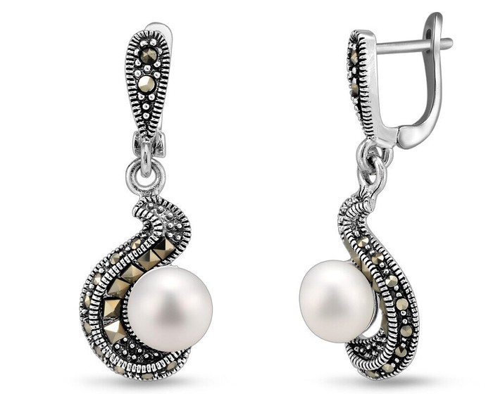 Серьги, арт.655001 Серебро Серебро 925, 8,38 гр., жемчуг , марказит