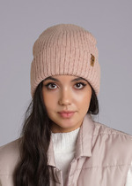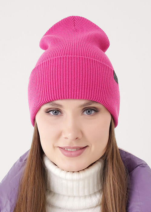 Шапка женская двойная с отворотом. Декорирована имиджевым логотипом. Идеально подойдёт для осени- весны.