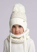 Детская вязанная шапка, выполненная из шерсти и пана. Модель с веселым помпоном, плотно прилегает к голове и хорошо тянется, сбоку украшена декоративной аппликацией со стазами. Теплая и уютная шапка для вашей модницы, станет незаменимой в осенне-зимнем сезоне.