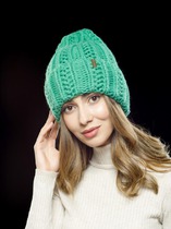 Объемная «деревенская» вязка, помпон из натурального меха и логотип в виде буквы «D» на отвороте, сверкающий мелкой россыпью кристаллов Swarovski, – роскошь и гламур в чистом виде. Классические, слегка удлиненные шапки с широким отворотом крупной вязки - самые популярные и комфортные. Мягкий широкий отворот подарит тепло и удовольствие от носки. Такие шапочки, облегающие голову, которые приятно и легко носить — это символ уличного шика. Неповторимые красивейшие меланжевые оттенки выполнены из дизайнерской пряжи собственного производства. Головной убор стильно смотрится с растрепанными волосами и, небрежно завязанным, низким хвостом.