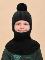 Милая шапочка-капор для малышей на холодную зиму с подворотом. Манишка застегивается на пуговку. Спереди вывязан рельефный рисунок в виде косы. Верхний слой связан из полушерстяной мериносовой пряжи. Подклад выкроен из хлопкового полотна и полностью пришит. Утеплитель изософт. На макушке два небольших помпона. Они привязаны, можно отвязать.