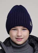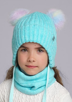 Мягкая двойная шапочка с забавными "ушками" на макушке. Верхний слой связан из полушерстяной мериносовой пряжи, нижний связан из мягкой акриловой пряжи, утеплитель - изософт. Аккуратные удобные завязки без узлов и наконечников. Спереди лейбл - мишка.