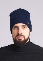 Мужская теплая шапка по голове с крупной вязкой и широким, рельефным отворотом. Очень теплая модель для зимы.