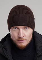 Мужская шапка по голове однотонной расцветки. Связана гладкой вязкой с узкой рельефной манжетой из полушерстяной пряжи. Утепленная модель для зимы - подкладка полный флис.