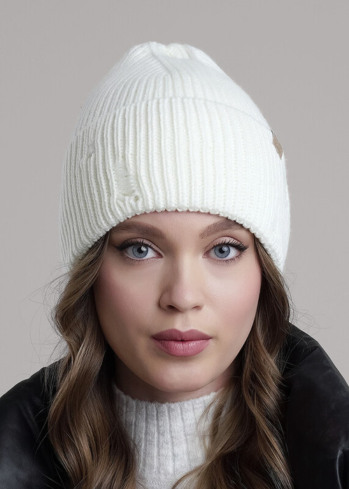 Женская шапка ""рваная"" с отворотом, с утеплением флисом по всей голове, декорирована стильной нашивкой в височной зоне. Отлично подойдет для холодной зимы.