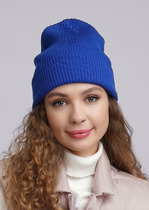 Шапка женская с отворотом, декорирована стильной нашивкой в центральной части. Подойдёт для осенне-весеннего периода.