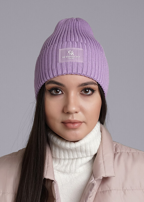 Шапка женская с отворотом, декорирована стильной нашивкой в центральной части. Подойдёт для осенне-весеннего периода.